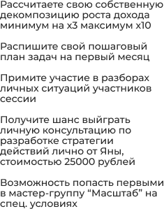 Получите шанс выиграть личную консультацию по разработке стратегии действий лично от Яны, стоимостью 30.000 руб.